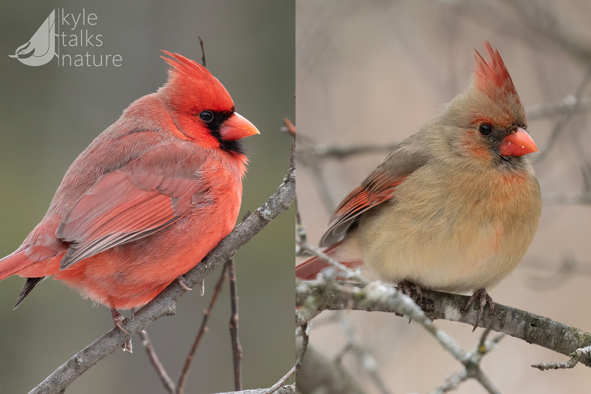 - Flame-colored Tanager – A matter of degree, as the female is a more subdued version of the male.